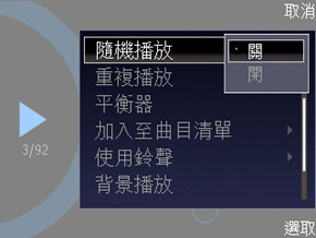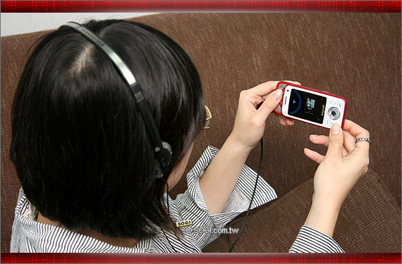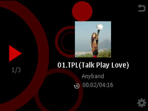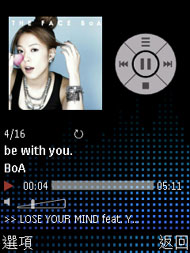 該怎麼來駕馭 Smsung i458 的音樂播放呢?簡單的說明如下:當音樂已進入播放模式,輕按 DJ 飛梭轉環可讓音樂播放或是暫停;輕壓 DJ 飛梭轉環上方或下方,可快速掃瞄音樂曲目;向下輕滑 DJ 飛梭轉環,則可跳至下一首音樂曲目。若已經可熟悉大拇指來進行輕按、輕壓、輕滑三種方式,對於 i458 的音樂播放操作可以說是掌握了八九成以上。