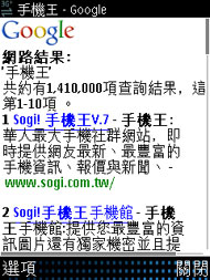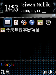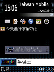 此外,在首頁內建 Google 的搜尋快捷列,於待機模式下直接在螢幕底部的 Google 搜尋框當中,輸入文字立即找到欲查詢的資訊,目前也只有 Samsung 的 S60 手機將 Google 快捷搜尋,放在首頁下方的明顯位置,讓使用者更迅速查詢資料。