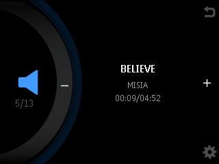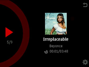 Samsung i458 往下滑之後,音樂播放介面呈現橫式播放,以 DJ 飛梭轉環來操作音樂播放;若是以手機模式進入音樂撥放器,音樂介面就呈現直式的顯示,則是透過傳統的五方向鍵來操作。需注意的是,唯有往下滑進入音樂播放介面模式,才會有 DJ 飛梭轉環的介面,直式、橫式的介面還是有點不同。橫式的播放介面,搭配 DJ 飛梭轉環最為直覺化且順手。