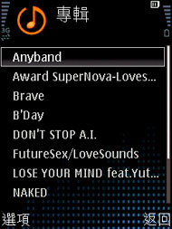 另外,i458 的音樂介面也支援專輯封面顯示,透過 Windows Media Player 同步的音樂,皆可於播放器中顯示該專輯封面照片,曲目的相關資訊顯示也相當完整。
