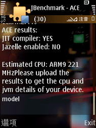 ARM 與 JBenchmark 合作開發的測試程式「ARM CPU Estimator(ACE)」,可測試手機的處理器與 Java 效能,以及 CPU 資訊以及圖表。測試的方法非常簡單,只要將 ACE 程式傳到手機或記憶卡當中,打開程式在手機上安裝即可。安裝完成後,打開 ACE 應用程式檔案並執行,即可就可以看到如 CPU Family、時脈與 Java 效能圖表等資訊。