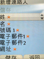 選擇新增電話之後,就會出現姓、名、號碼一、號碼二、電子郵件、地址、公司、來電鈴聲、相片等字樣,只要一一輸入要儲存的資料,再按儲存就行了。