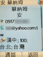 選擇新增電話之後,就會出現有名稱、行動電話、住家電話、電子郵件、來電群組、語音標籤等字樣,一一點取進入,輸入相關的電話資料,在按鍵上還能直接切換中英文輸入法,輸入資料很方便喔!