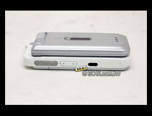 WX-T71 機身的右邊設計有耳機插孔,他是日本統一規格的平行插頭,內附的耳機也許是固定式的耳機,不能更換耳機,不過之後或許會拖出專用的轉街頭,讓平行接頭換上自己習慣使用的耳機。接著音量鍵不用多說,跟機身一樣的材質,可以設定大小聲,包括試聽鈴聲、通話中、待機中,除了撥號中之外不能更改之外,這當是有點麻煩,因為現在很流行來電答鈴,有的人的音樂真的是過大聲,只好把電話拿的遠遠的。WX-T71 的紅外線埠再也不是所謂的三角貓紅外線,現在什麼檔案都可以傳送接收不用靠手機管理程式了,真是一大進步!