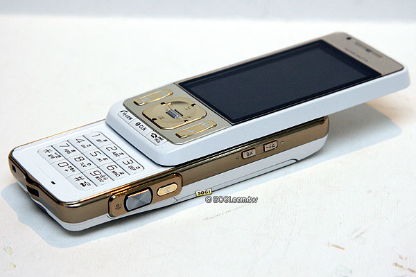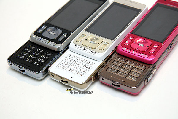 SO905iCS 三個顏色都配的滿好看的,傳統的日系風格。銀黑款的主體是黑色的、機背和按鍵是銀色;白金款主體是白色的、操作鍵和側邊是滾金色;而粉紅色款的部份,側邊和數字鍵區則是巧克力色,每個顏色都很可口的感覺。