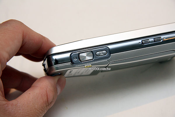 ※ 快門鍵的接觸面積相當大,沒有台灣部分的 Cyber-shot 手機快門鍵過小不容易操作的缺點。旁邊有照片快速瀏覽鍵,可以在拍照模式下快捷進入相片集瀏覽。