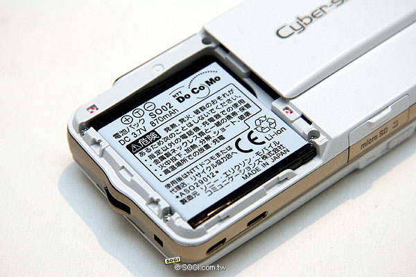 ※ 採用 870mAh 的鋰電池,似乎是有點不夠持久。尤其 FOMA 系列的手機,在 WCDMA 待機模式下又比 GSM 耐久的多,偏偏在台灣的話使用 2G 模式是比較穩定的,也因此相當的耗電。