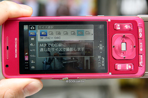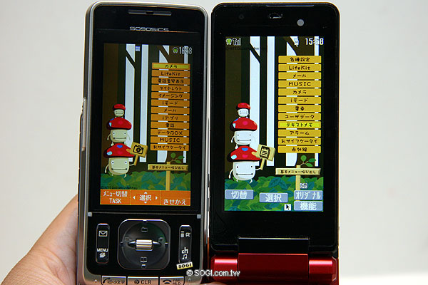 ※ 很明顯 SO905iCS 的長度多了一截,但可別忘了螢幕的規格是 2.7 吋 vs 2.2 吋。順帶一提,日本的低階手機螢幕規格也提升至 2.4 吋~ 2.7 吋了,高階款手機大部分都在 3 吋~ 3.2 吋間,其實 SO905iCS 的 2.7 吋螢幕也沒特別了不起。