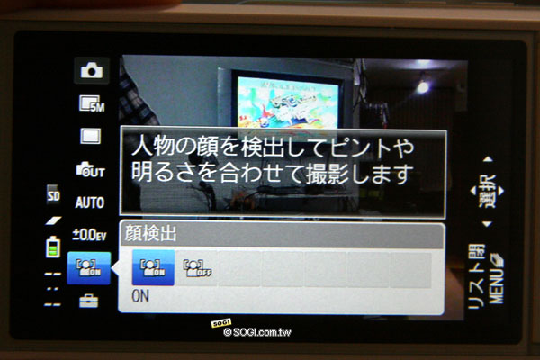 ※ 臉部辨識功能開啟後,可針對臉像自動對焦。