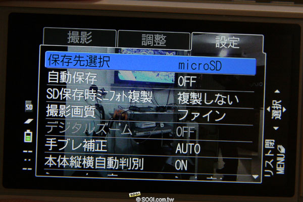 ※ 數位防手震、攝影畫質、保存位置的設定