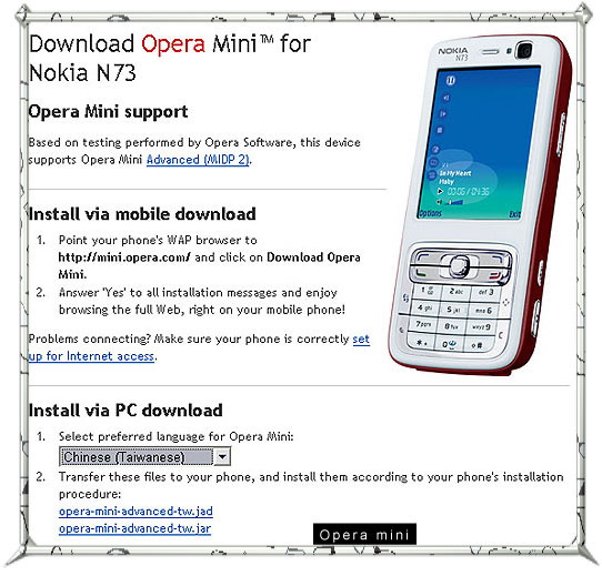 支援 Java 的手機大部分皆可下載 Opera mini 手機版瀏覽器,下載網頁於此: