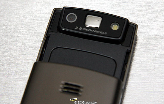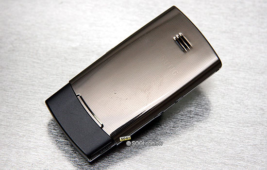 E950 的背蓋應該是這一系列最具質感的一款了,類似合金觸感的金屬格紋,雖然不知道其真正的材質,不過質感方面已經比以往的手機有突破。