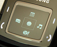 Samsung E950 的內容大致延續過去高階手機的特色,2 吋、26 萬色的 QVGA TFT 螢幕,有 U-Go、獨特字體撥號等,一看就知道是三星的手機。在主選單其中的一個主題有點不太一樣,當指標停留在該功能的時候,其字體和圖示就會放大。不過,操作起來有點頓頓的,反應不是很理想。