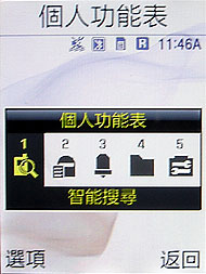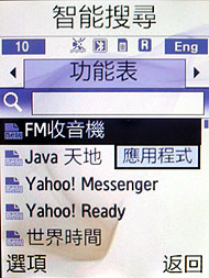 個人功能表可以預設五個快捷功能,而 OLED 的四個方向鍵同樣也可以指定四個功能。內建 Yahoo!搜尋和即時通功能,不過只有 2.5G 水準的 E950,上網似乎就不是太主打的功能。而智慧搜尋則是能夠輸入關鍵字,來搜尋手機當中電話簿、訊息、資料夾、行事曆等的資料,確實還滿實用的。