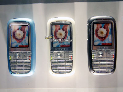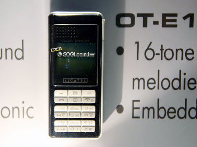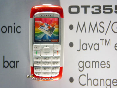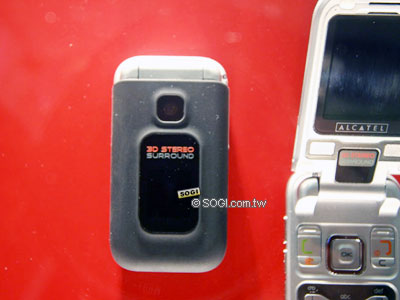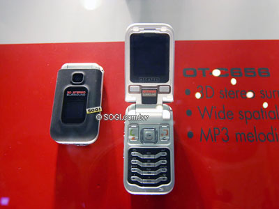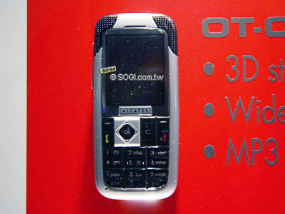 OT-C555 的機身上面放了兩個 3D 環繞喇叭,看起來就很悍的樣子,不過現場不能體驗它的魅力,身為法國籍的 ALCATEL,在會場館有自己獨立的展館,館內沒有手機的產示而是通訊系統的介紹與展示,手機方面就十數支。不對稱設計與 OT557 的設計理念相同,一看就知道是比較針對年輕人而設計的。而 MP3 鈴聲,更是自 OT756 開始,就變成其注重的規格。內建的 30 萬畫素相機,最長可以拍攝 1 分鐘的影片。內建 6 MB 記憶體。