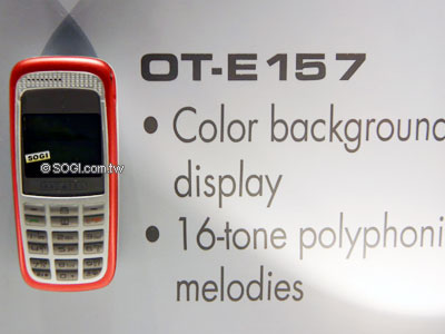 三款手機的基本規格是一樣的,只在外型作些不同的嘗試,而 OT-E159 則又是折疊式的手機,設計上有自我風格。三款手機使用 1.4 吋螢幕,並有白色背光燈,外型設計就是走簡單路線,也就是「E」系列的訴求。最高可以儲存 50 筆簡訊,以及 250 組電話簿,其他就是比較一般且實用的工具為主,走的當然就是樸實風。
