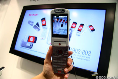 在坎城 SHARP 會場上最光鮮亮目的手機就是 902 與 802 兩隻手機, 902 為 802 之進階版,大小雷同,外型的差別僅在於部份面版顏色不同,902 並擁有光學變焦、自動對焦以及搭配 202 萬畫素的相機。SHARP 的手機依舊是大大隻的體積,不過由於寬大螢幕讓人可以一目了然,因此仍受大家喜愛。這兩隻手機有共通的優點,就是手機等於相機。因為兩隻手機螢幕皆可 180 度旋轉,因此轉一轉就可以變成照相手機,直著拍橫著拍,都好看!