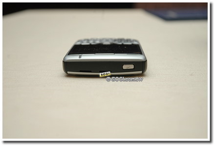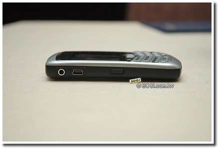 因為採用了TrackBall裝置,先前黑苺機產品配置在機側的三向滾輪設計,也就不復見,機身兩側改以簡潔的方式呈現,右側除了音量控制鍵,也保留了搭配軌跡球的返回鍵設計;機身左側則保持黑苺一貫設計,依序為3.5mm耳機孔、miniUSB充電傳輸埠與情境模式快捷鍵。