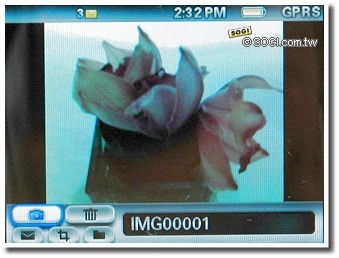 機背的部份則是Blackberry Curve多媒體功能的展現之一,具有200萬畫素相機鏡頭、自拍鏡與補光燈的設計,支援最高1600×1200畫素相片輸出,並能自訂白平衡、特效等設定。