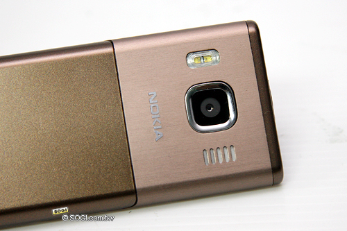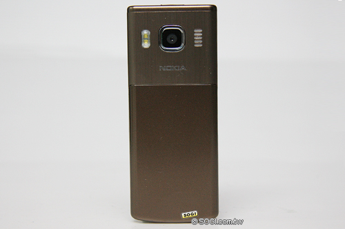 Nokia 6500 classic 整體設計講求簡單俐落,在機身背面更是明顯,背面僅一顆 200 萬畫素相機鏡頭、雙 LED 閃光燈與立體揚聲器,其他部分則是佈滿著細微髮絲條紋,簡單又有型。