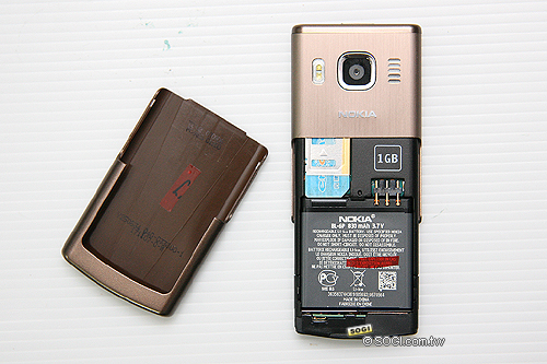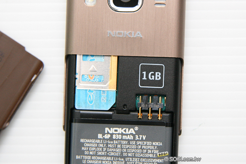 取下背面電池蓋,可以發現 1GB 字樣的標示,明白的點出,Nokia 6500 classic 是一款具備高容量 1GB 的多媒體手機。
