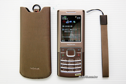 此外,在銷售包裝盒內,除了基本的旅充、耳機、電池與說明書之外,Nokia 6500 classic 還多附贈一組金色的手機保護套與吊飾,組裝搭配起來更有型。