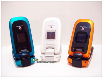 關於網路的設定方面,可以單設定在 3G 或是 GSM 或是開啟雙模的模式,是 Vodafone 手機一貫的設計,而手機內建有三種通訊功能:紅外線、藍芽以及 USB 連線,都是相當方便的功能。內建的主題共有四種,右圖為一開始所介紹的外星兔子乘涼系列。