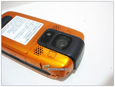 攝影的畫面從左下方彈跳出來,特別一提的是攝影模式有三種:數位相機模式、手機相機模式以及條碼讀取。手機相機模式最大可拍攝到 240x320 的解析度,對於傳送 MMS 專用很適合,而要拍攝大張到 200 萬畫素的時候則選擇數位相機模式才可拍到大張的,若要讀取 QR code 的時候則採用條碼讀取模式即可。