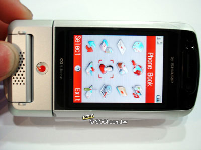 Sharp 802SH 的尺寸為 102 x 50 x 26 mm,重量為 141g,較 902SH 稍微輕了一點,不過比起一般的手機還是偏重的,這是高階 3G 手機目前仍無法改善的弱勢。根據商家表示,目前 802SH 尚未中文化成功,因此手機的選單都是英文或是日文顯示,想要購買的網友也必須問清楚,以免之後後悔。