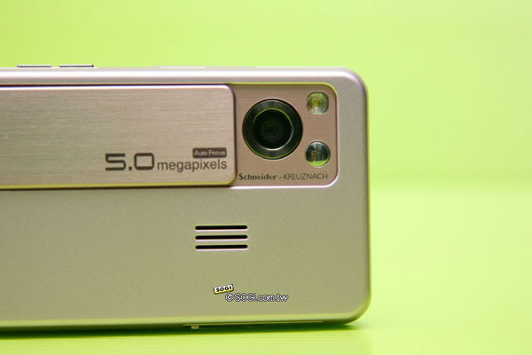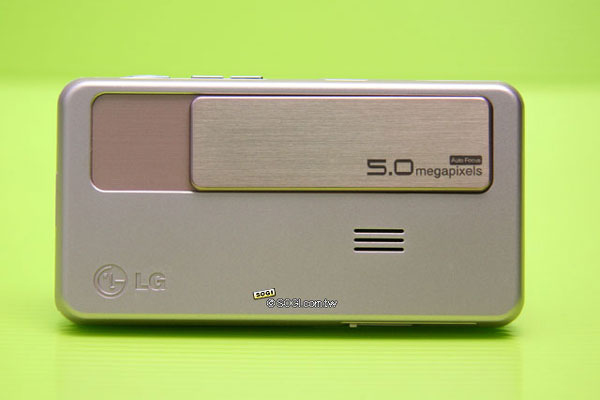 背蓋材質是使用金屬的材質製成,鏡頭保護蓋採用高質感的髮絲紋設計,讓手機看起來更為高貴。另外背蓋的設計是仿造自一般數位相機滑蓋即拍的設計,不用進入繁複的功能介面,直接將鏡頭保護蓋滑開就可以拍照,非常方便。