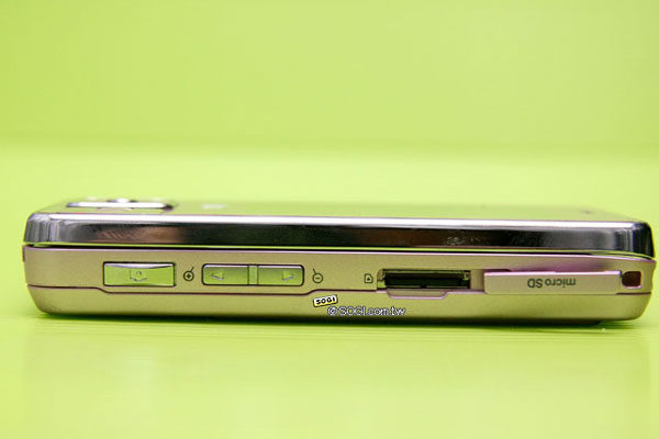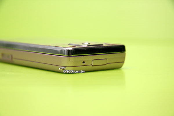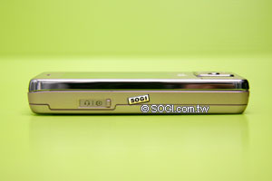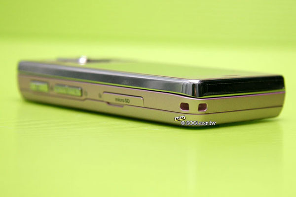 機身右側由左而右依序排列著相機快捷(快門)、變焦(也可當上下鍵使用)、microSD 插槽(最大支援至 4GB )。