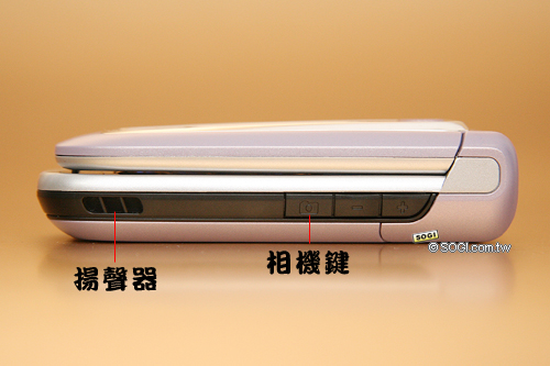 Nokia 6267 側邊設計比較制式化,不外乎是相機快捷鍵、音量調整鍵等設計,另外,在側邊靠近底端則是其揚聲器設計。