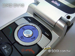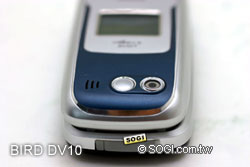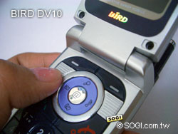 先從功能較基本的BIRD DV10說起。由於僅配備30萬畫素相機,在影音功能方面稍嫌貧弱。最大可拍攝640×480解析度的照片,按圓形功能鍵的左右可進行十段變焦、按上下則可變換特效模式(黑白、暗褐二種),與一般照相手機按上下才為變焦的使用習慣不同。