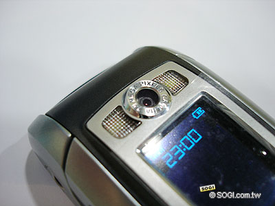 與 MP3 播放直接由外型進行播放操作快捷鍵一樣,Samsung E720 也可以直接按下機身側邊的相機快捷鍵啟動拍照模式,當按下快捷鍵之後,E720 便可直接進行外螢幕自拍的動作!