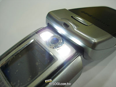 Samsung E720 內建 130 萬畫素相機,在鏡頭的兩側分別各置一個強力補光燈,對於捕捉陰暗畫面,更加明亮清晰,平常亦可充當臨時照明燈來使用。