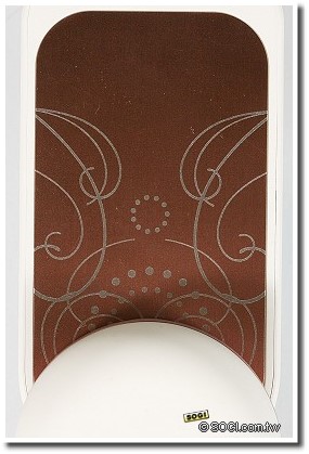 左右手都可以順暢推啟的旋蓋設計,可設定推蓋接聽電話,操作相當便利。不過,由於中央旋轉卡榫彈力極佳,闔蓋時無法只用單手將上蓋推回,非得雙手並用不可!旋蓋後的上蓋背面,延續螢幕四周的金屬刻花,大片的金屬搭配蝕刻花紋,內外的精細質感讓 NOKIA 7373 不再單純是手機,成功升格為藝術品。