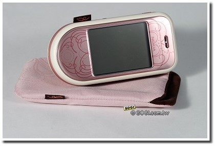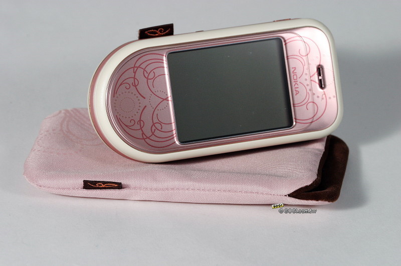 另外,除了手機美美的之外,NOKIA 7373 盒裝配備內容中,還有粉白相間、可收聽 FM 的有線耳機,以及粉色外表、酒紅色絨布內裡的專用手機套。有別於 7370 金色高調奢華風,粉色系的壓花手機套觸感一流而且感覺溫婉。