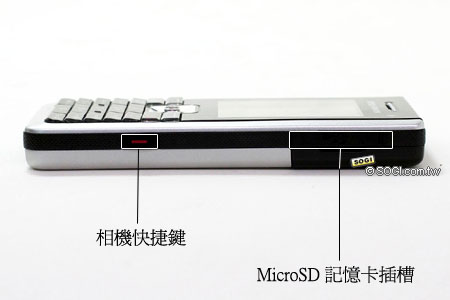 在機身側邊設計上,除了可明顯的感受到 BenQ-Siemens S81 超薄機身的魅力之外,在快捷鍵的設計上,S81 仍舊表現得非常齊全。從以上三張圖片來看,可以得知 S81 是一款可支援 MicroSD 記憶卡擴充功能的多媒體手機,此外,S81 的機身側邊相機快捷鍵亦可充當橫向拍攝的快門鍵。