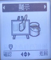 第一眼看到這隻手機的感覺,覺得這隻手機的外型蠻特別的~~~,很像一個盾牌一般,至於它具備了那些功能,以及有沒有其他特別的功能...目錄採用了動畫的方式來表現,共有八大項,分別為顯示、TCC加值服務、遊戲、個人化設定、工具箱、通話設定、話機設定、聲音設定