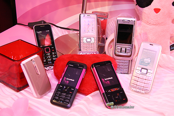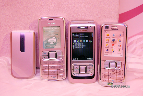 前陣子才剛發佈黑色版 Nokia E65 與 N82 沒多久,諾基亞今日再次為粉紅女孩詮釋七款粉色系手機,分別是 Nokia E65、Nokia 6120 classic、Nokia 5610 XpressMusic、Nokia 5310 XpressMusic、 Nokia 3500 classic、Nokia 3110 classic 與 Nokia 2505 CDMA 手機。這七款手機皆各自搭配不同的優惠方案 ( 下段將列出相關優惠表格 ),此外,Nokia 也針對這七款粉色系手機邀請四位女主角 ( 名模蔣怡、樂團歌手愛紗、時尚達人路嘉怡與李詠嫻 ) 於現場淺談她們對粉色的愛好與看法。