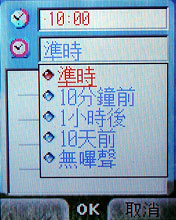 雖然 C305 是一款平價手機,但手機的工具功能十分完整,媲美高階手機的個人資訊管理。以行事曆功能來講,設定記事提醒的時候,可以設定準時、10 分鐘前、 1 小時後、10 天前提醒,詳細紀錄個人的所有行程。