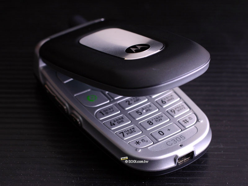 MOTO C305 擁有圓潤的外型, 84.5 x 46 x 22.4 mm 的尺寸和 89 g 的重量,體積輕巧易於掌握,即使是放在口袋中也不會佔空間。輔以灰黑色霧面的精緻烤漆,絕佳的握感,完美呈現手機的優美弧度,更讓使用者得以合理的價位,就能享用到高質感的手機。