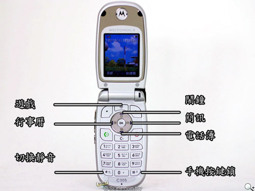 MOTO C305 擁有人性化操作介面,手機的五方向導航按鍵、對應鍵、甚至 * 和 # 字鍵,都有快捷鍵能直接進入其功能,無論是遊戲、行事曆、鬧鐘、簡訊、電話簿、切換靜音、手機按鍵鎖等,這些使用率高的功能都能輕鬆掌控。