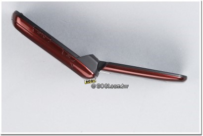 右側則依序為「拍照快捷鍵」與耳機、傳輸線二合一的「兩用 USB 埠」,從側面能明顯看出 Z238 邊線圓弧,絲毫沒有鋒利的角度,持有時提供使用者滑順的手感。只可惜 23 mm 的厚度,不管怎麼用色彩修飾都還是很「大支」,想要讓它完美的與口袋貼合,完全是不可能的任務!