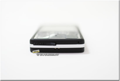 雖然機身薄度不算創記錄,但對於一款內建百萬畫素相機、又可外接T-Flash卡的影像機來說,3368也算是記錄保持人了。記憶卡插槽位於手機底部,還有軟蓋可保護避免沾染灰塵。