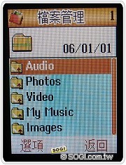 為應付存放大筆資料,3368也有檔案管理員幫使用者分類各式影像檔案。包括有影像、音樂、影片等。