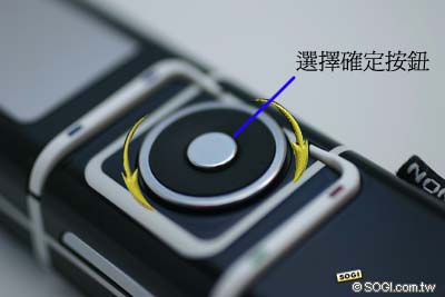Nokia 7280 的操作方式幾乎都必須依賴下圖所指示的滾動圓盤來操作,使用者要進行任何功能選項時,只要順時針或逆時針轉動,確定時再按下中間按鈕即可。