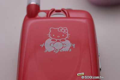 不僅是掀蓋面板上印有 Hello Kitty 圖案,OKWAP A267 就連手機電池也是刻著 Hello Kitty。