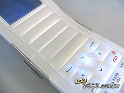 隱藏式軸承更是 Nokia 2650 另一項大膽的作風,跟以往許多折疊式手機不同,Nokia 2650 在軸承的部位用塑膠皮覆蓋住,這樣看起來上蓋與按鍵完全是連接成一體,中間軸承沒有視覺的阻礙,很有 Nokia 自我的設計風格與大膽創新!