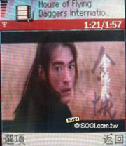 除了音樂播放器之外, 7610 竟然擁有 real player 這個程式,讓使用者可以觀賞影音兼具的影片哩。此後,什麼電影預告、廣告短片,都可以珍藏在手機裡囉。(記憶卡內提供「十面埋伏」的國際版電影預告短片,在短片裡,金城武的古裝打扮真是俊俏極了,呵呵,草莓焦糖布丁忍不住傻笑讚嘆中……)